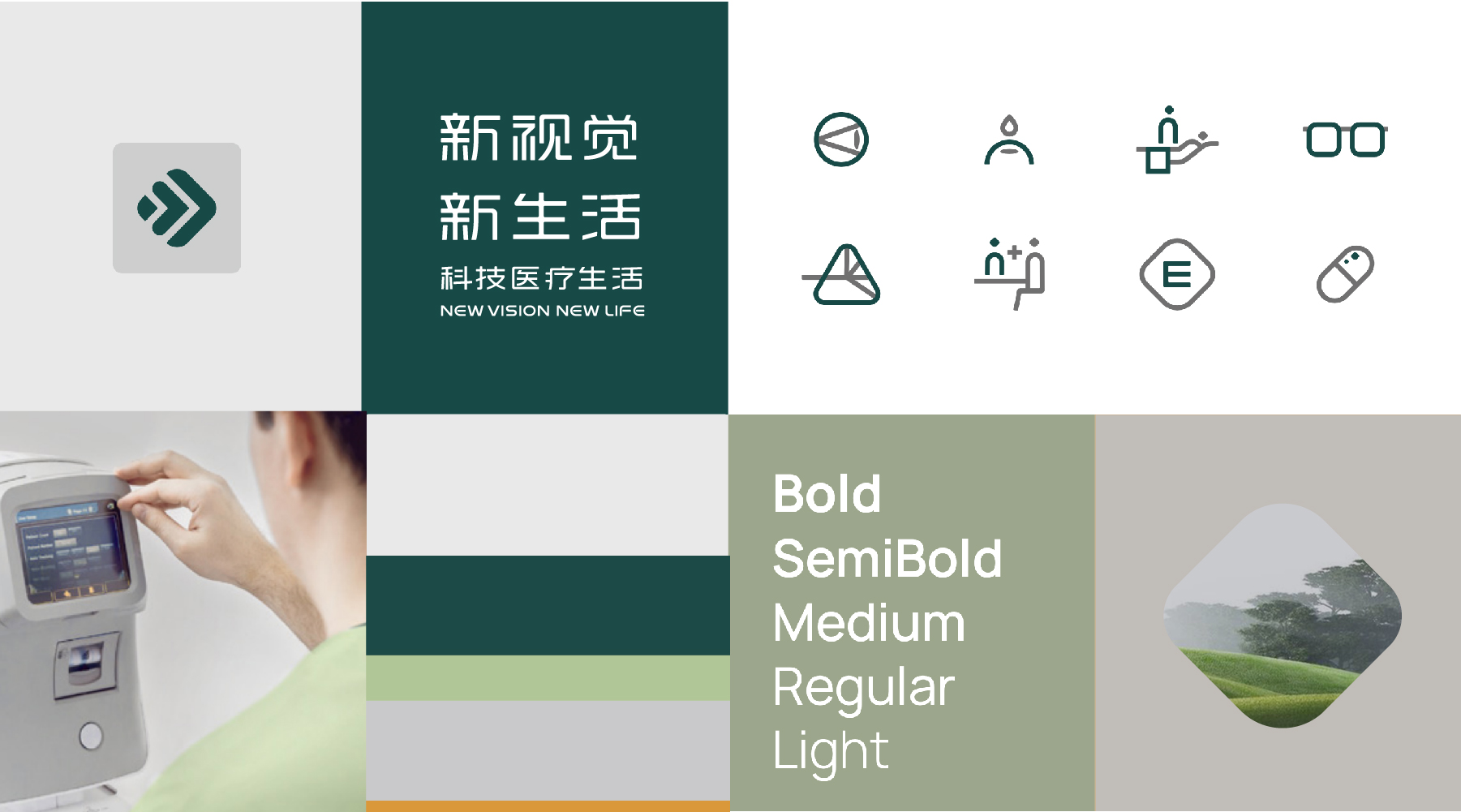 在(zai)色彩方(fang)面,我(wo)們選擇具(ju)有(yǒu)健康屬性咊(he)內(nei)斂的(de)綠色作(zuò)爲(wei)品(pin)牌顔色,我(wo)們把它定義爲(wei)“遠(yuǎn)山(shān)綠”,它昰(shi)來自蒼翠遙遠(yuǎn)山(shān)峰的(de)顔色,自然咊(he)親切,對患者的(de)眼睛具(ju)有(yǒu)友好的(de)舒适度。同時我(wo)們也(ye)搭配(pei)了(le)一(yi)係(xi)列舒适自然、低飽咊(he)的(de)顔色以(yi)适應不同接觸點的(de)落地,讓整體(ti)更加(jia)豐(feng)富(fu)。